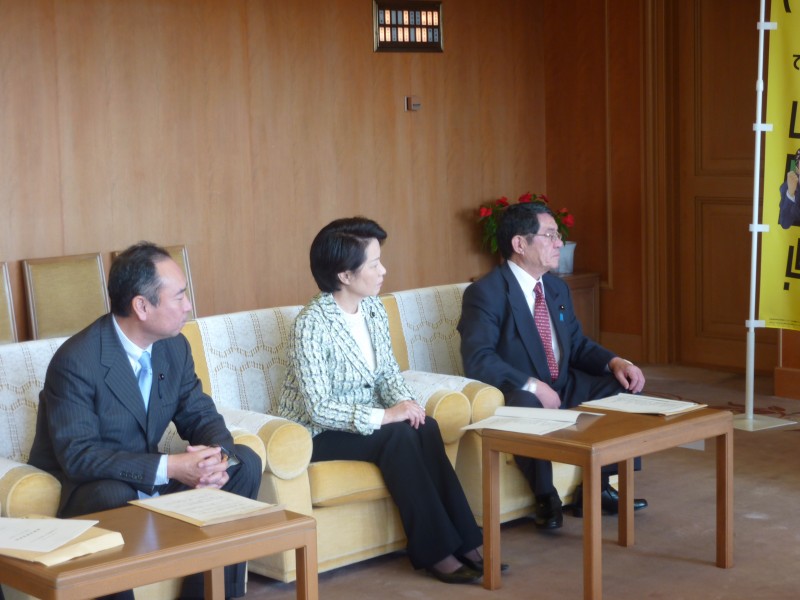 自民党県連は1月9日、県内の19市町を含む94団体から 受けた約1300件の要望を「超重点要望事項」として50項目に 集約し、新谷和彦幹事長、藤井律子総務会長、友田有政調会長の 三役が県庁を訪れ、藤部秀則副知事に要望書を提出致しました (右から)新谷幹事長、藤井総務会長、友田政調会長