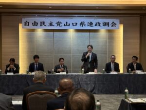 自民党山口県連は、10月26日(日)に県連政調会を開催し、衆議院選挙区ごとに分かれて市町長・同議長や地域支部から来年度の県予算や施策に対する要望をお聞きしました。